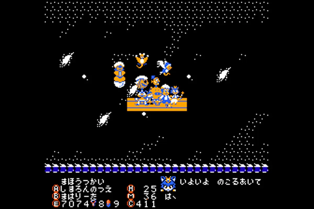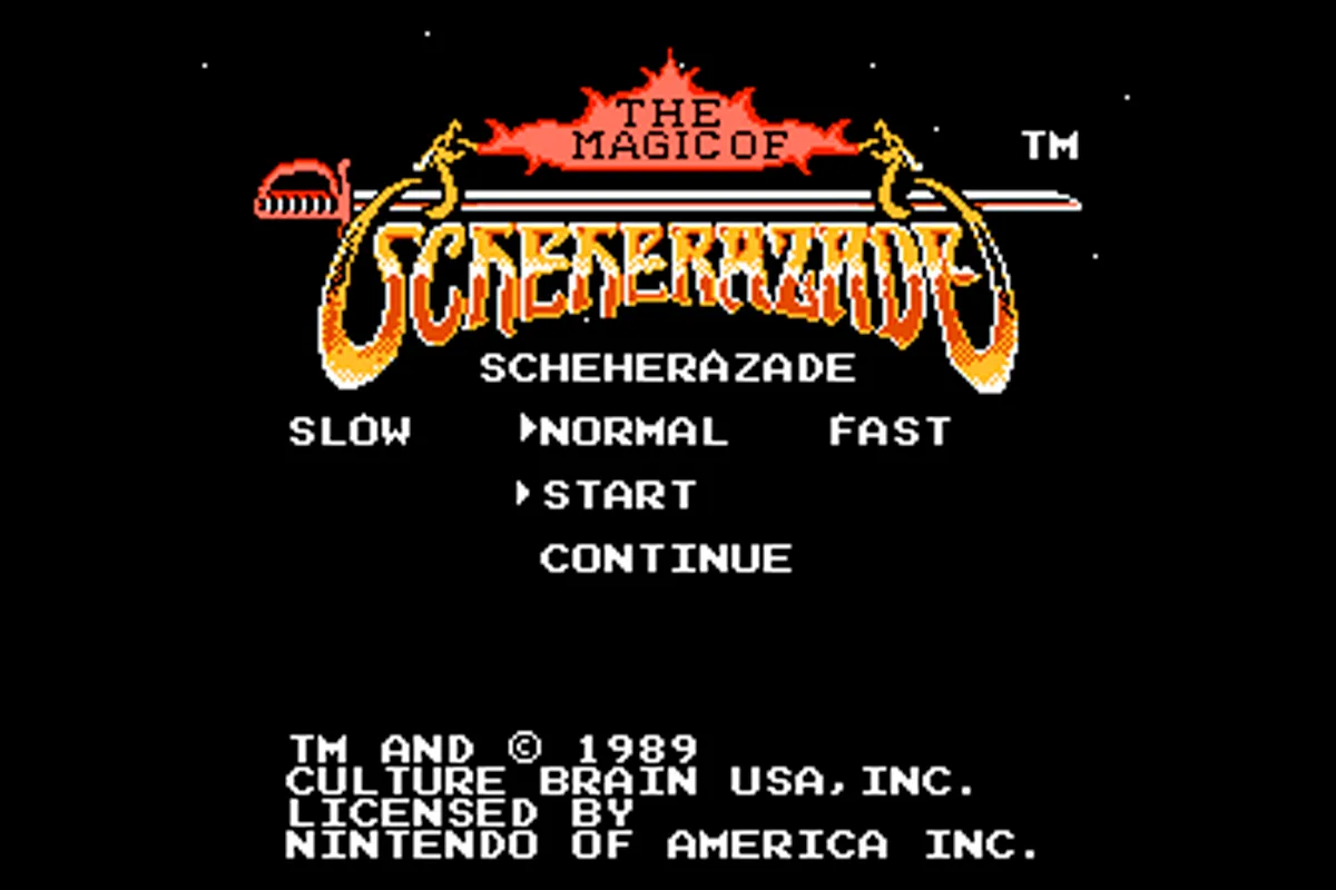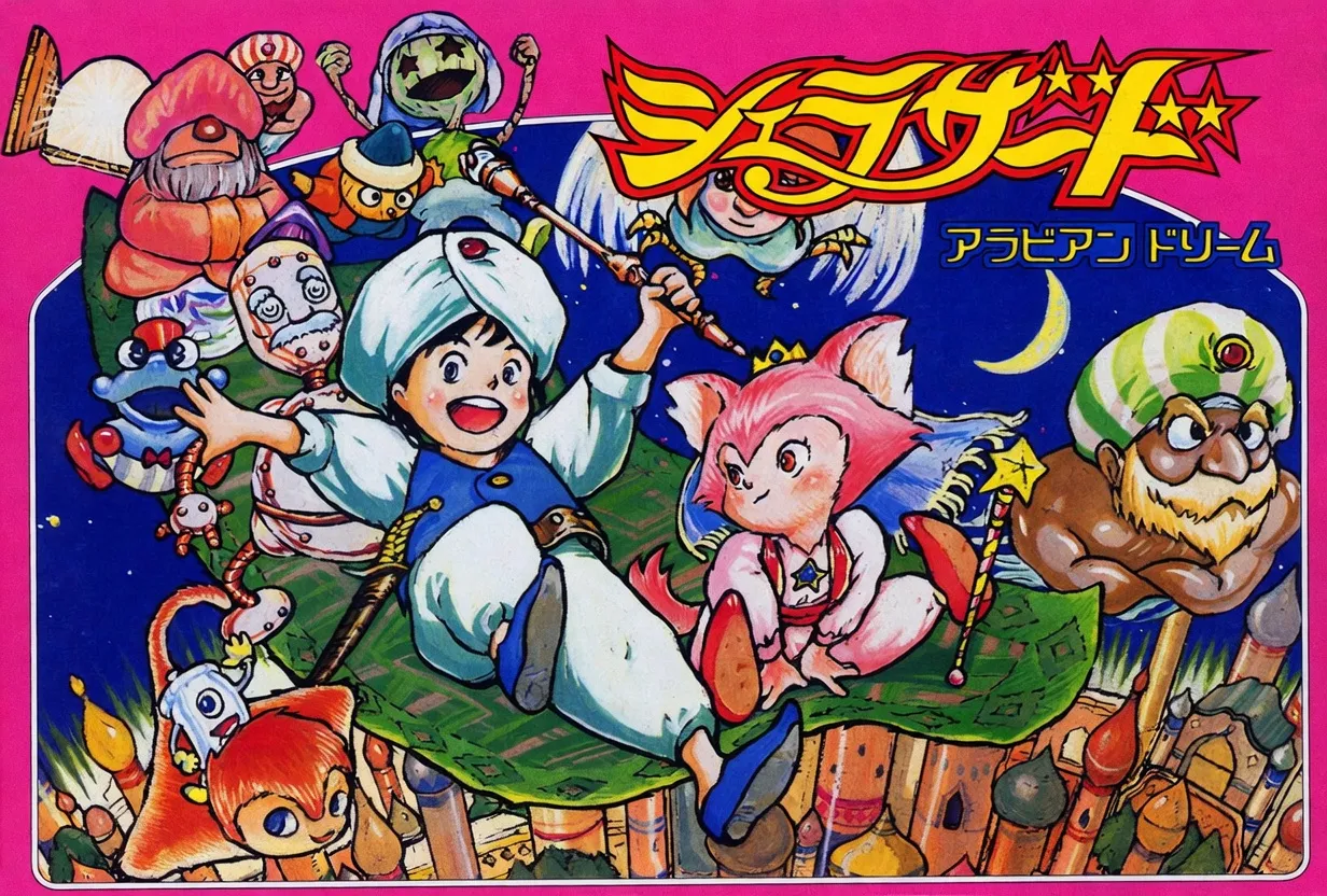 各ワールドには過去・未来など異なる時代が存在し、プレイヤーは“時空の扉”を通じて時間を行き来しながら、仲間を集めて強敵に立ち向かいます。主人公の称号(戦士・聖者・魔法使い)を選択するシステムがあり、称号によって攻撃性能やイベントが変化するため、プレイスタイルに応じた攻略が可能です。戦闘で敗れると残機が減るなどアクションゲーム的な要素も盛り込まれており、独自のシステムを備えた作品として評価されています。北米版『The Magic of Scheherazade』も発売されており、現在も海外を含むレトロゲームファンの間で知られる作品です。